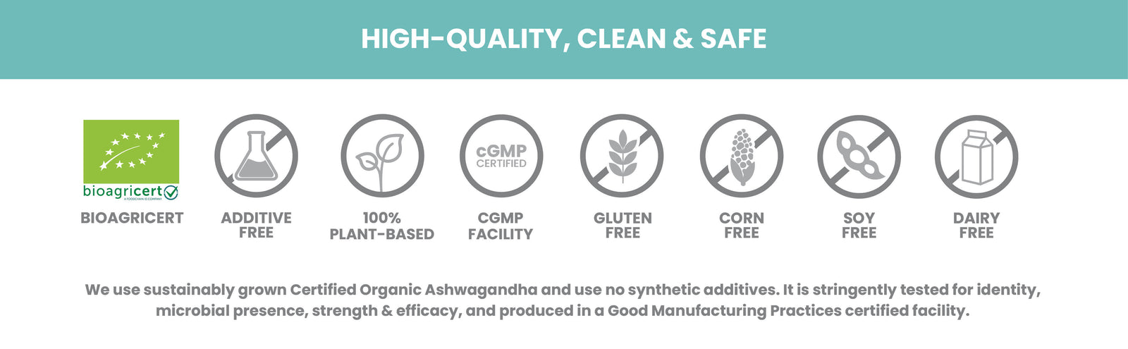 مسحوق جذور الأشواغاندا (ويثانيا سومنيفيرا)* 380 ملغ (0.2% ويثانوليدات، 0.76 ملغ)، مستخلص جذور الأشواغاندا (ويثانيا سومنيفيرا)* 280 ملغ (0.5% ويثانوليدات، 1.4 ملغ)، مستخلص جذور الأشواغاندا (ويثانيا سومنيفيرا) بتقنية ثاني أكسيد الكربون فوق الحرج* (8% ويثانوليدات، 0.8 ملغ)